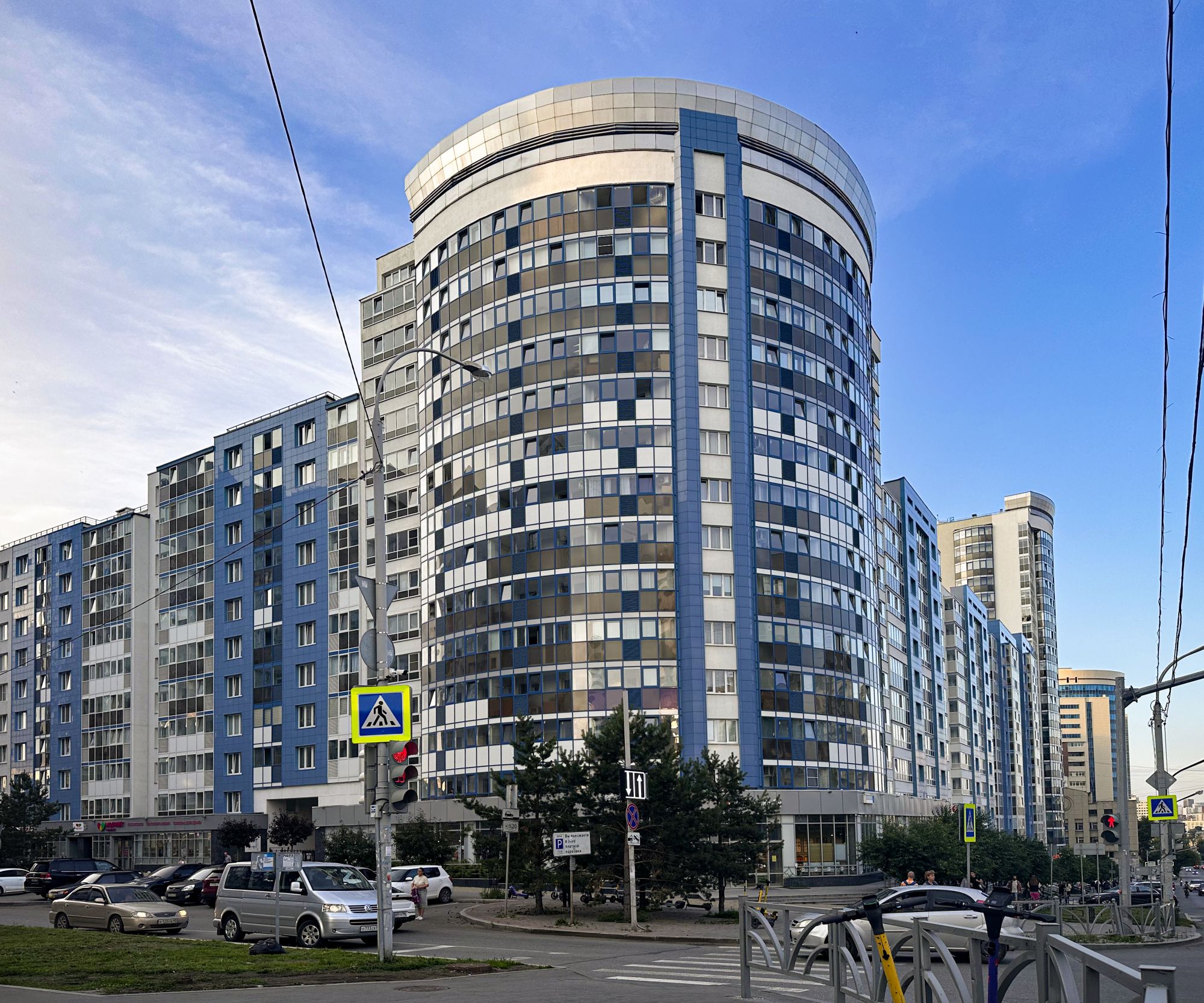 Он представляет собой целый обособленный район, в котором предусмотрено всё для комфортного проживания всех жильцов: · торговые площади, расположенные на первом этаже комплекса, и гипермаркет, чтобы жители комплекса могли покупать необходимые товары рядом с домом;